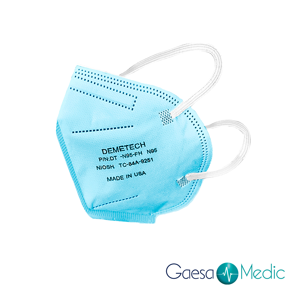El  respirador pequeño DemeMASK Surgical N95 Fold está diseñado para ayudar a brindar protección respiratoria al usuario. Este respirador tiene un nivel de eficiencia de filtro de al menos 95% contra aerosoles de partículas libres de aceite. Es resistente a los fluidos. Es desechable y se puede usar en cirugía. Puede adaptarse a una amplia gama de tamaños de cara. Este producto no contiene componentes hechos de látex de caucho natural.